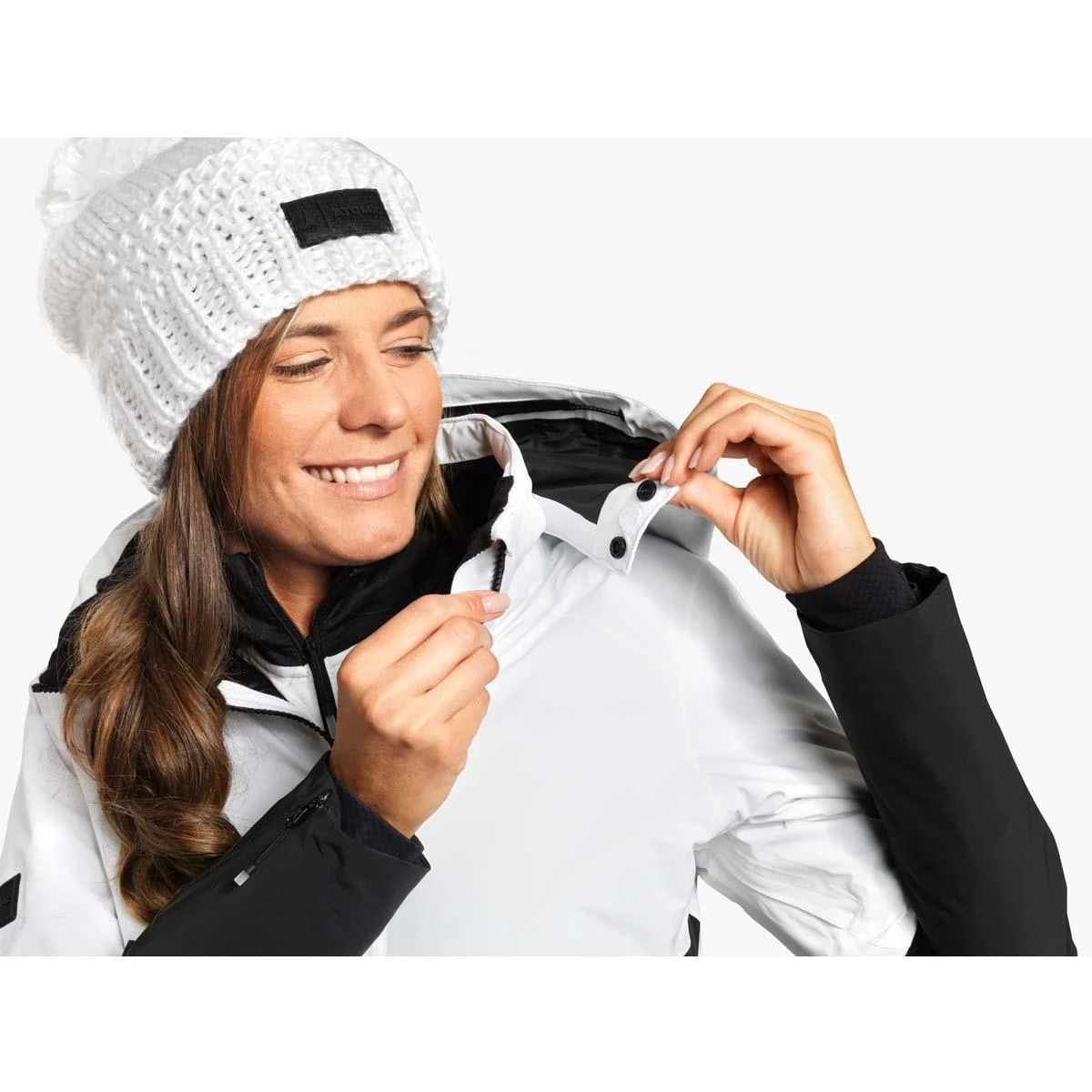 The Women’s Snowcloud Jacket from Atomic is brand new this season – part of the Snowcloud skiwear collection exclusively for female skiers, designed by Atomic’s all-women design team. It brings together high-performance details with an empowering, feel-good style. Made from 2L Stretch Fabric, it’ll keep you dry and warm all season. Featuring a detachable hood and detachable ripstop powder skirt for deeper snow. It’s cut to hug your figure but still with all the movement you need for skiing.