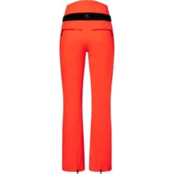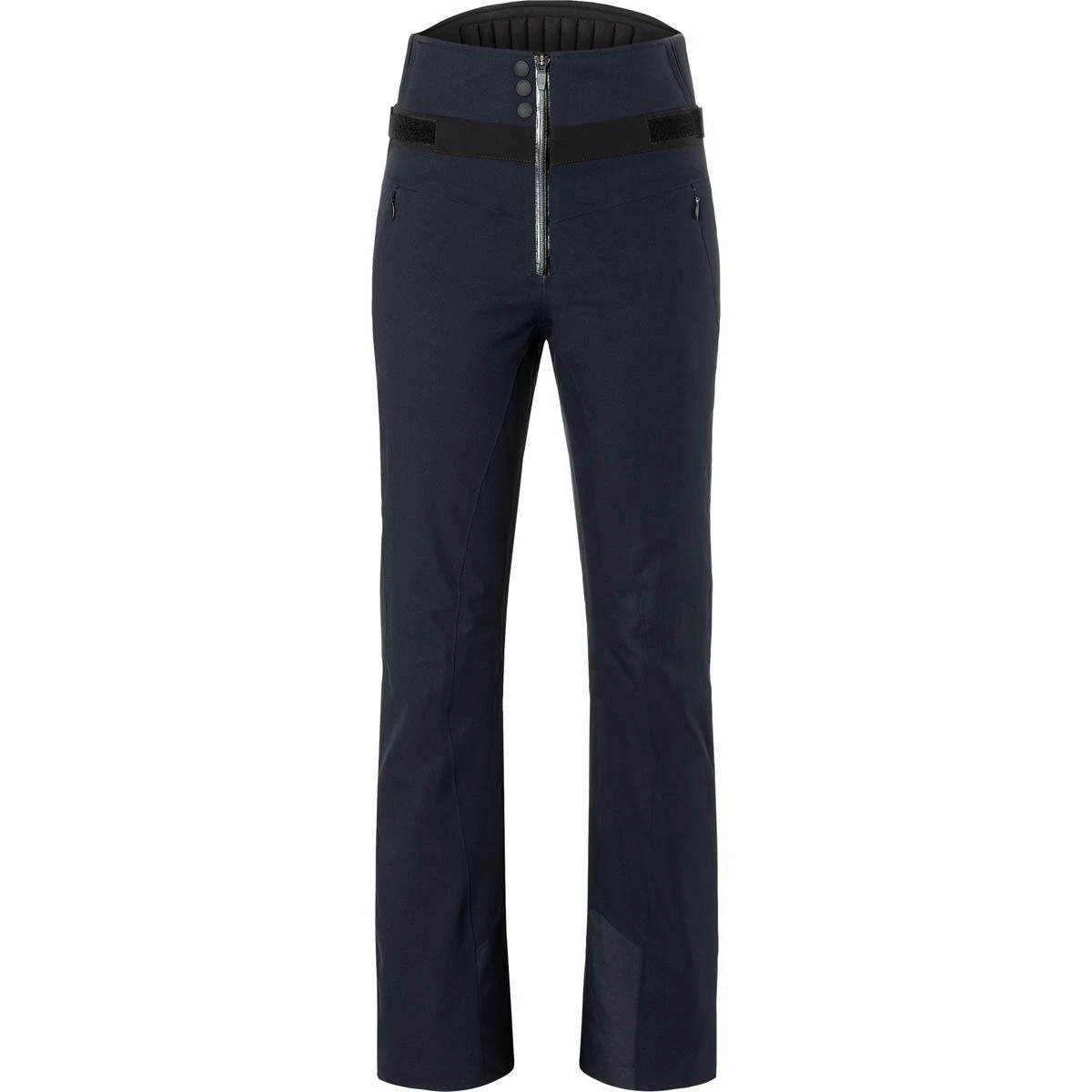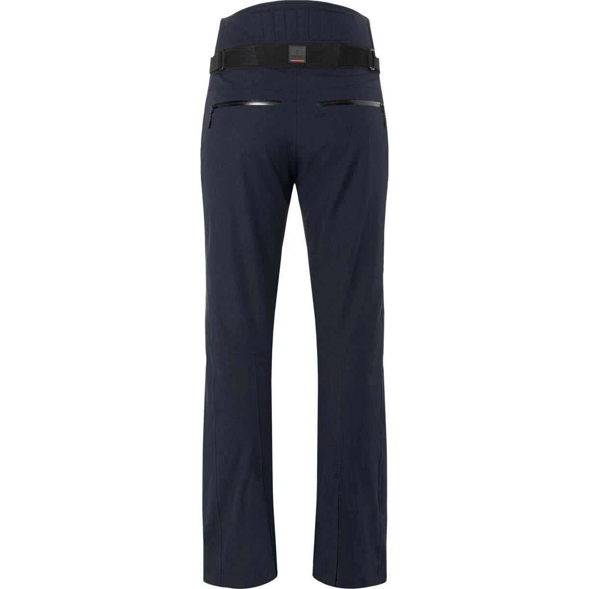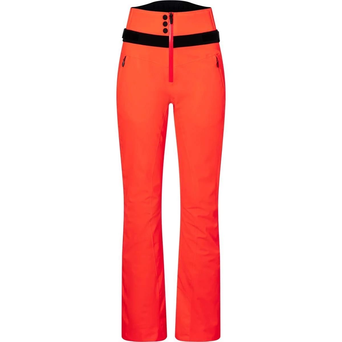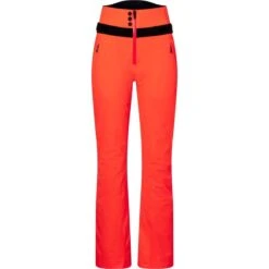 High-waisted ski pants with elastic inserts in waistband. Velcro adjustable waistband. Logo at center back waistband. Rubber logo at center back waist