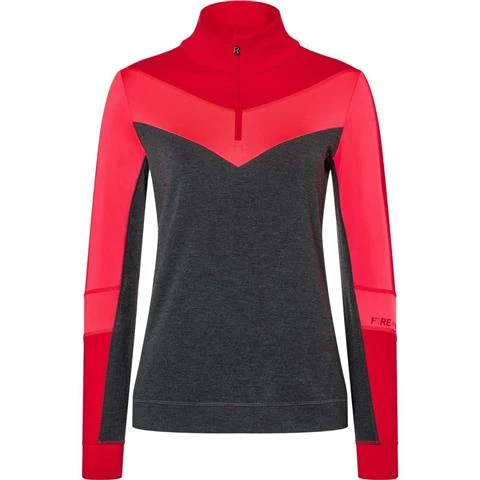Sporty yet feminine layering piece with soft brushed fleece backing.