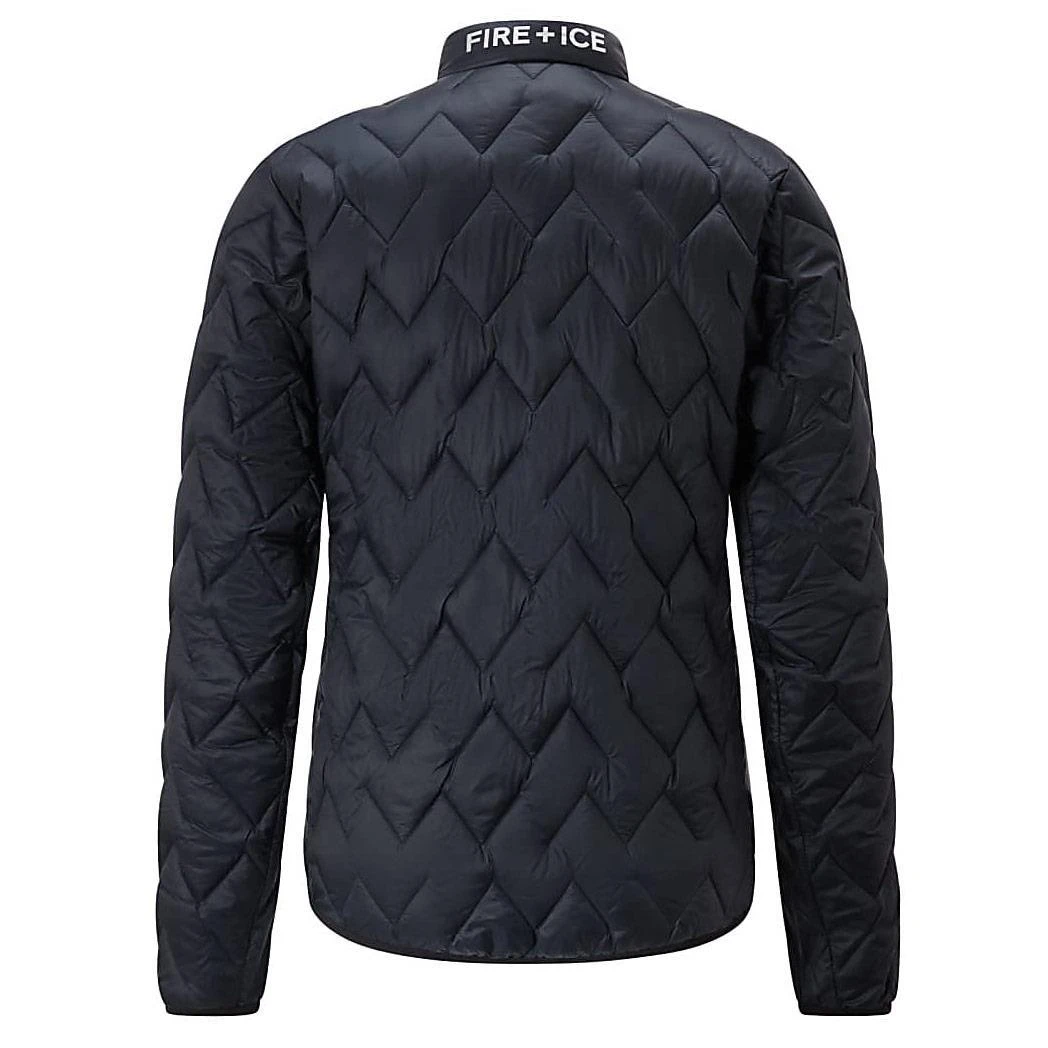 Lightweight ID ripstop jacket with power mesh inserts underarms. Elastic edgebinding for hem and sleeve heems. Rubber logo at upper left sleeve. F+I print at center back collar.