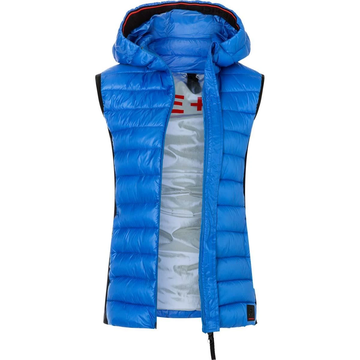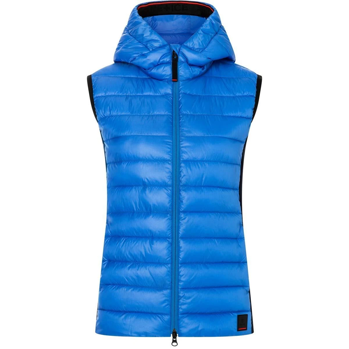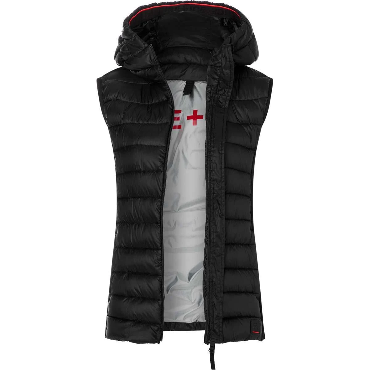 Lightweight ripstop vest with 4-Way stretch side part inserts. Elastic lycra tape at arm holes. Rubber logo at front right hem.