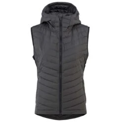 The Women’s Eva Down Vest from Kari Traa is 80/20 Down with a down proof material that has been treated with a Rudolf Bionic Finishยฎ ECO for a sustainable and fluorine-free durable water repellent property.ย It features a slim silhouette with a hood, high collar, dropped back hem and secure hand pockets.