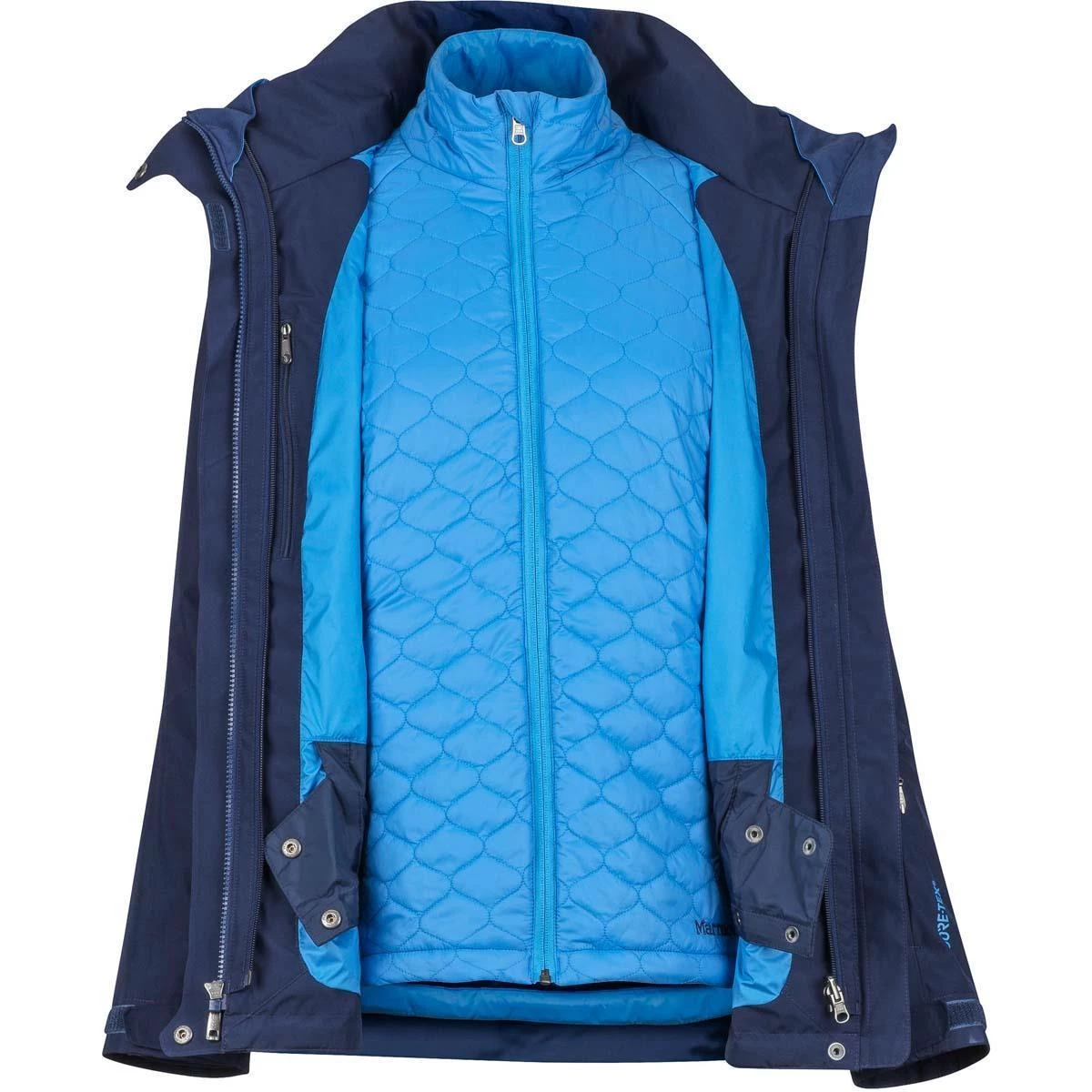 Marmot Women’s Sugar Loaf Component Jacket knows that every day is not the same, nor should your jacket be. The Sugar Loaf Component jacket is a versatile 3-in-1 allowing you the choice of wearing the liner for a cool trip into town, the shell on a day when the wind is blowing or rain is coming down, or combine the 2 for blustery winter days, a weekend on the slopes, or a winter trail excursion.ย