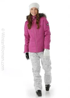 The Daphne is a hip length jacket in a 4-way stretch fabric with quilted detail at side panels. Features include articulated elbows, powderskirt, interior pocket, and a removable hood providing versatility on and off the slopes.