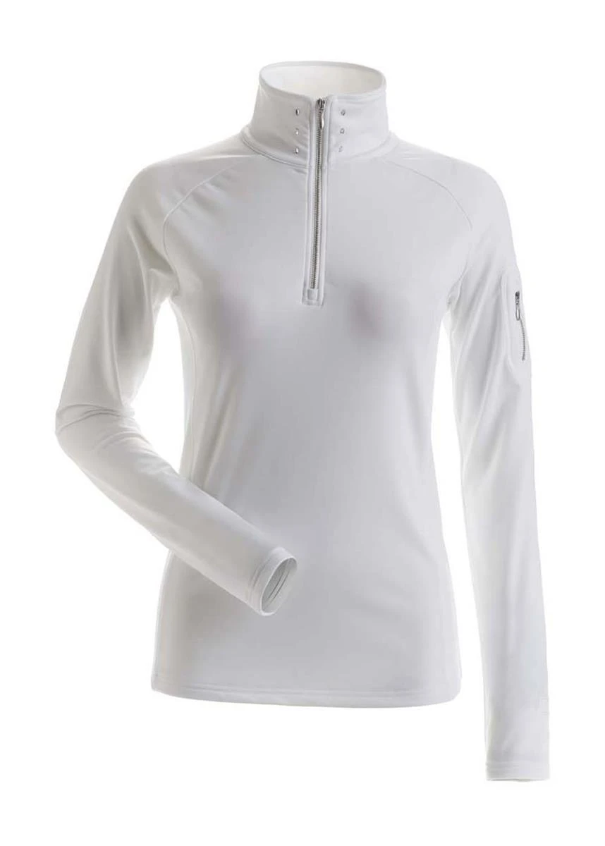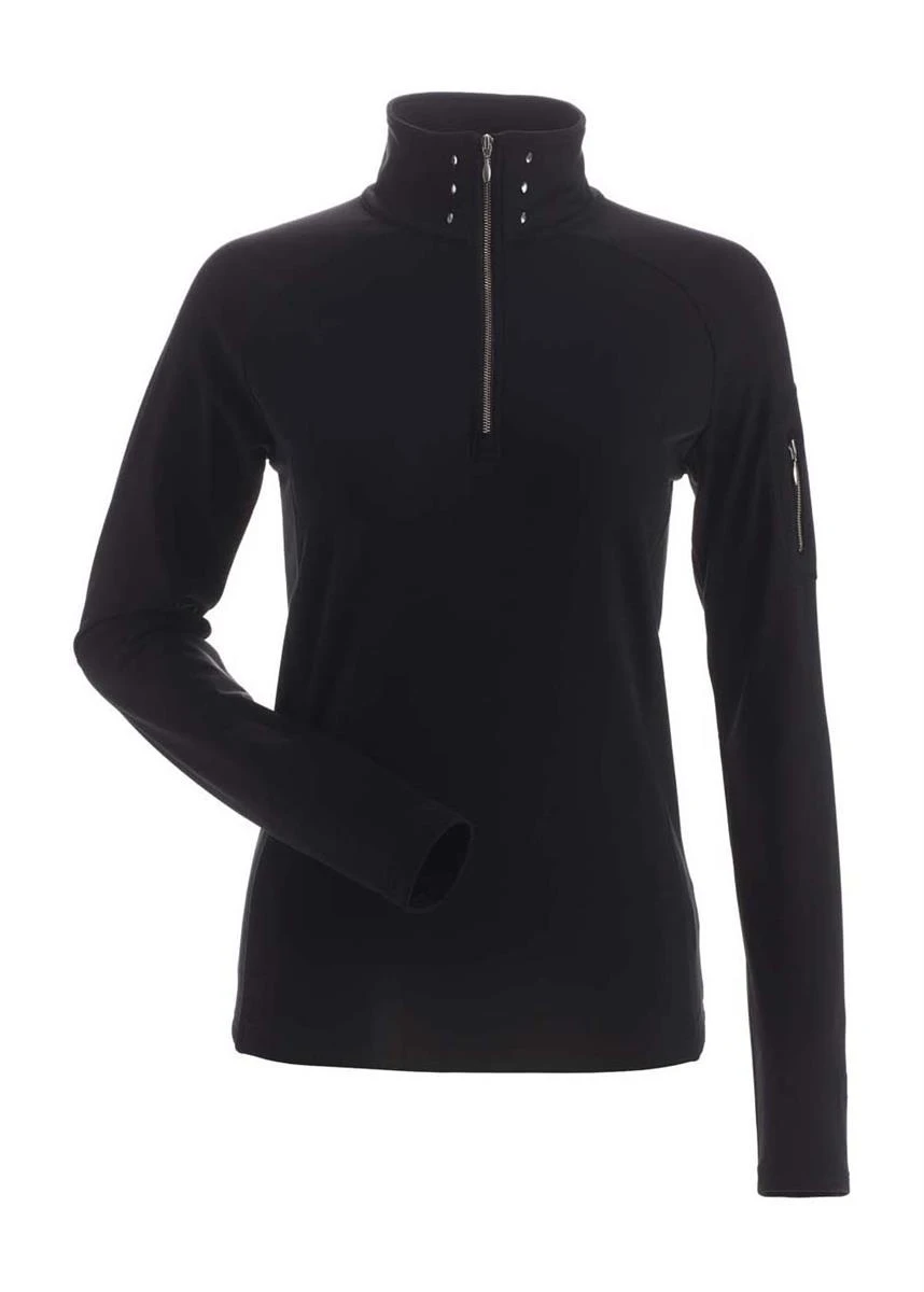 The Sophia 1/4 zip baselayer feels soft next-to-skin, providing warmth and style with jewel detail on collar and sleeve pocket.