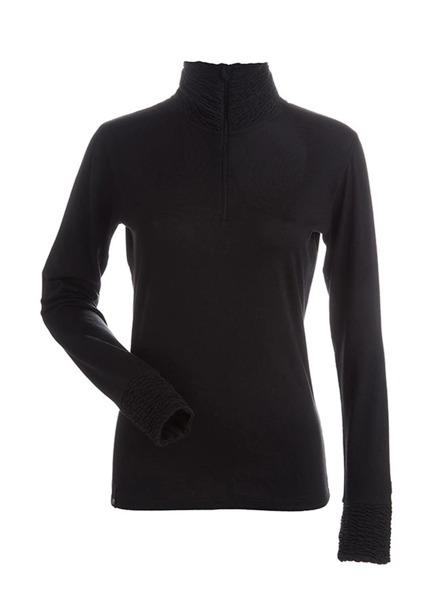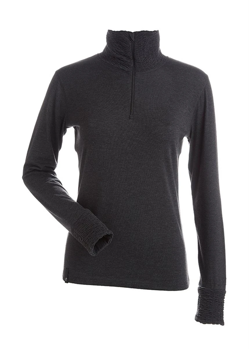 CONTENT: 96% Polyester, 4% SpandexLightweight heathered 1/4 zip t-neck with natural wicking properties, thumb thongs and self fabric ribbing on collar and cuffs.