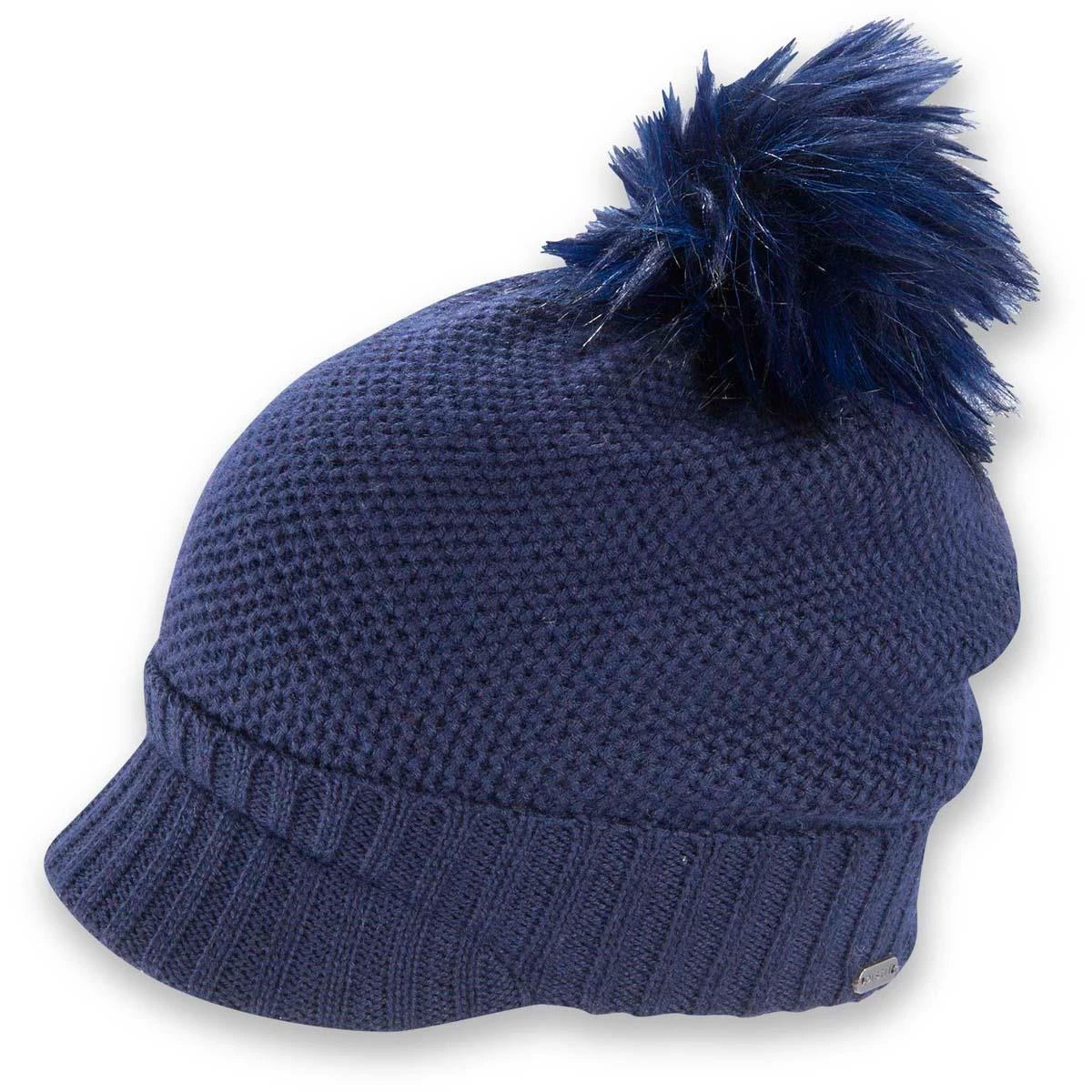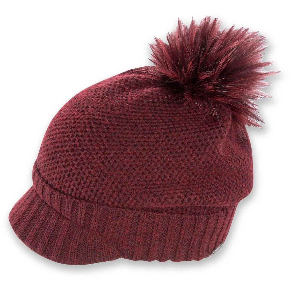 - Short brim with a ribbed cuff and faux fur pom in super soft yarn