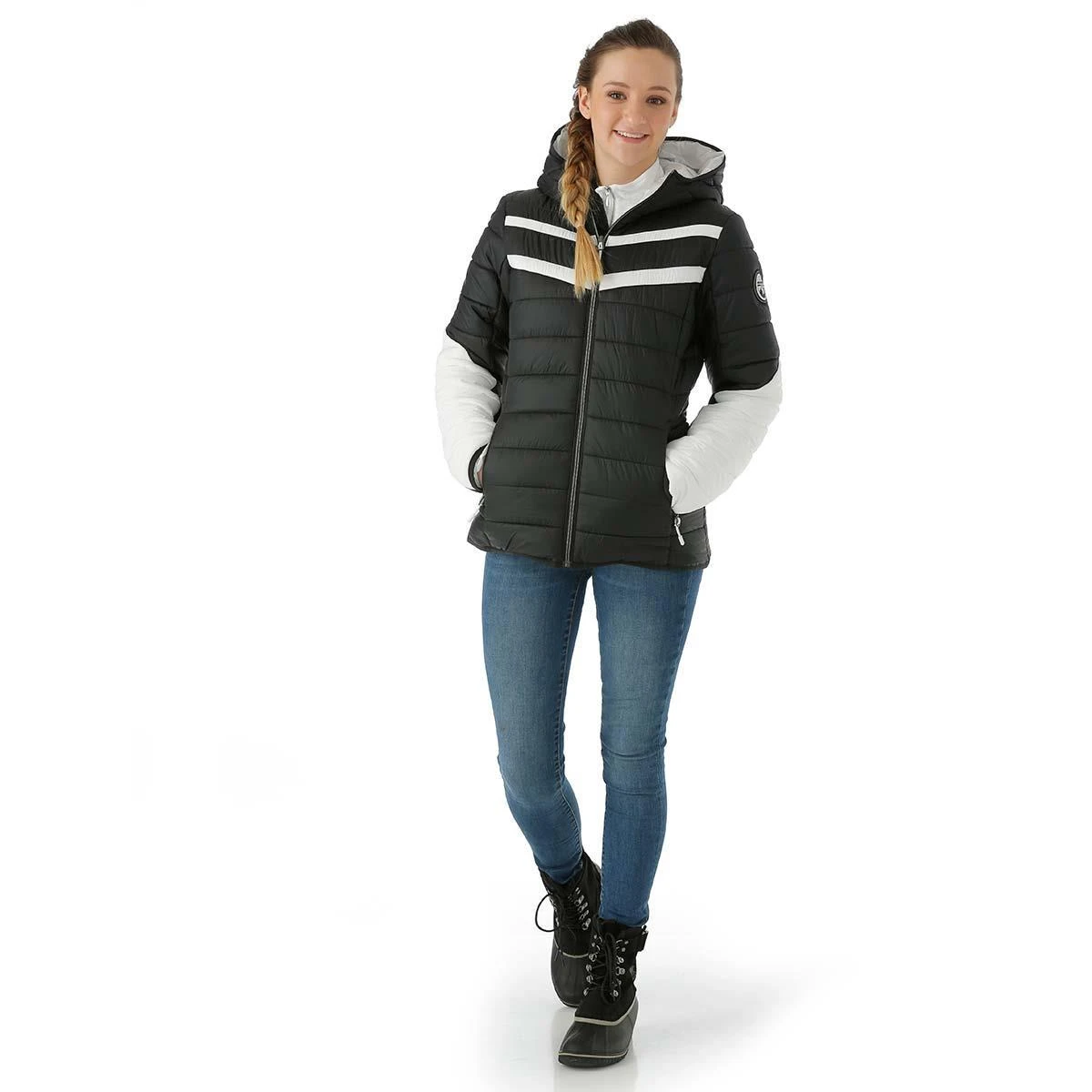 Layer the Ethos under a shell for frigid days at the resort or wear it around town all winter long. Indulge in the lightweight warmth of high loft PrimaLoft® Insulation and show your SPYDER pride with a heritage patch and classic race detailing. A downproof, recycled polyester ripstop outer with PFC-free DWR sheds light weather and adds durability. Flattering chevron stitching and contrast zippered front and hand pockets elevate the look of this technical insulator.