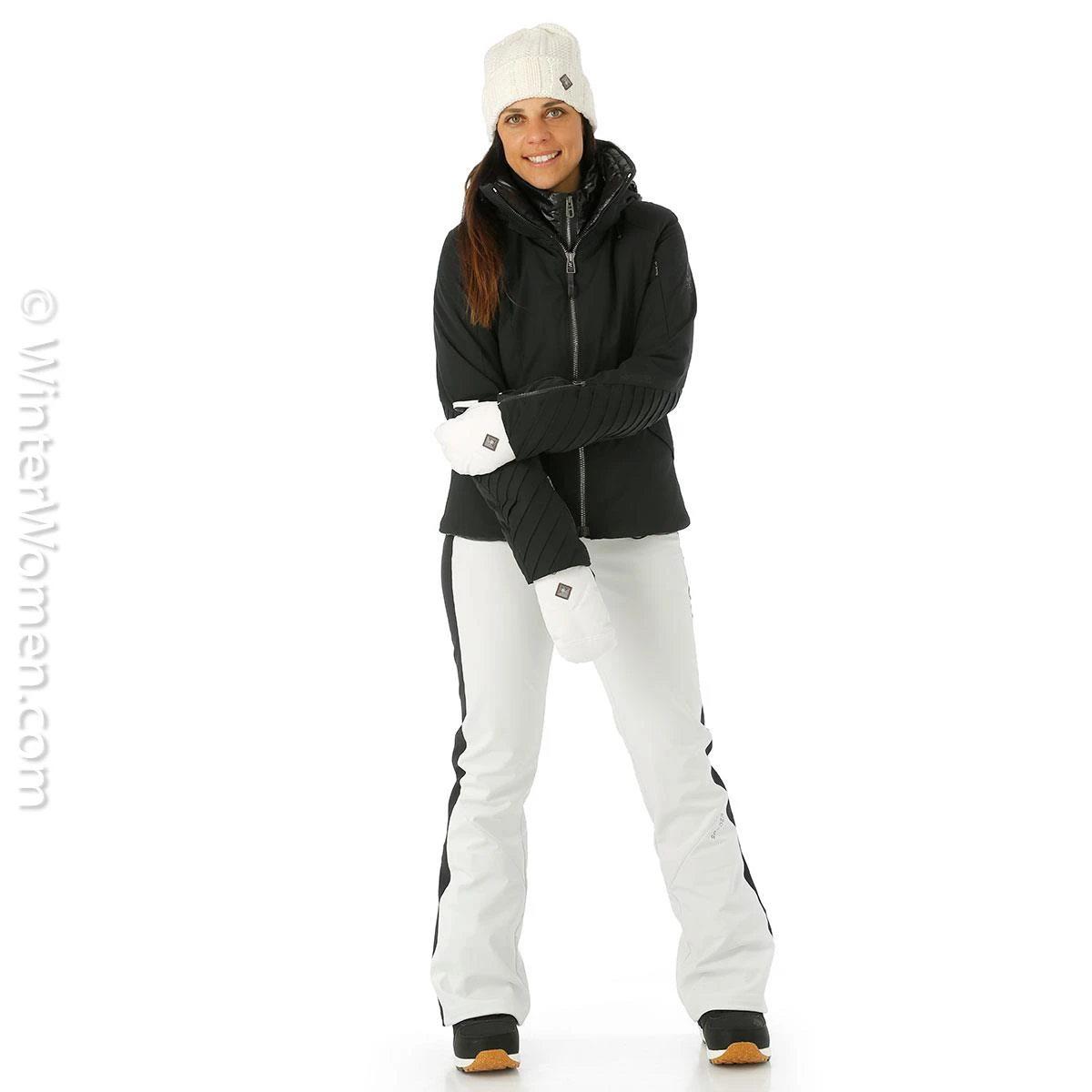The Women’s Pinnacle Jacket from Spyder is finely crafted with features such as a high shine inner placket, a dramatic collar, 360º stretch GORE-TEX, and PrimaLoft® Gold insulation. This sophisticated style not only looks great, but has an impressive ventilation system and removable powder skirt and hood. Designed for the most discerning woman, the Pinnacle can be worn from the lift into the chalet and turn heads doing so.