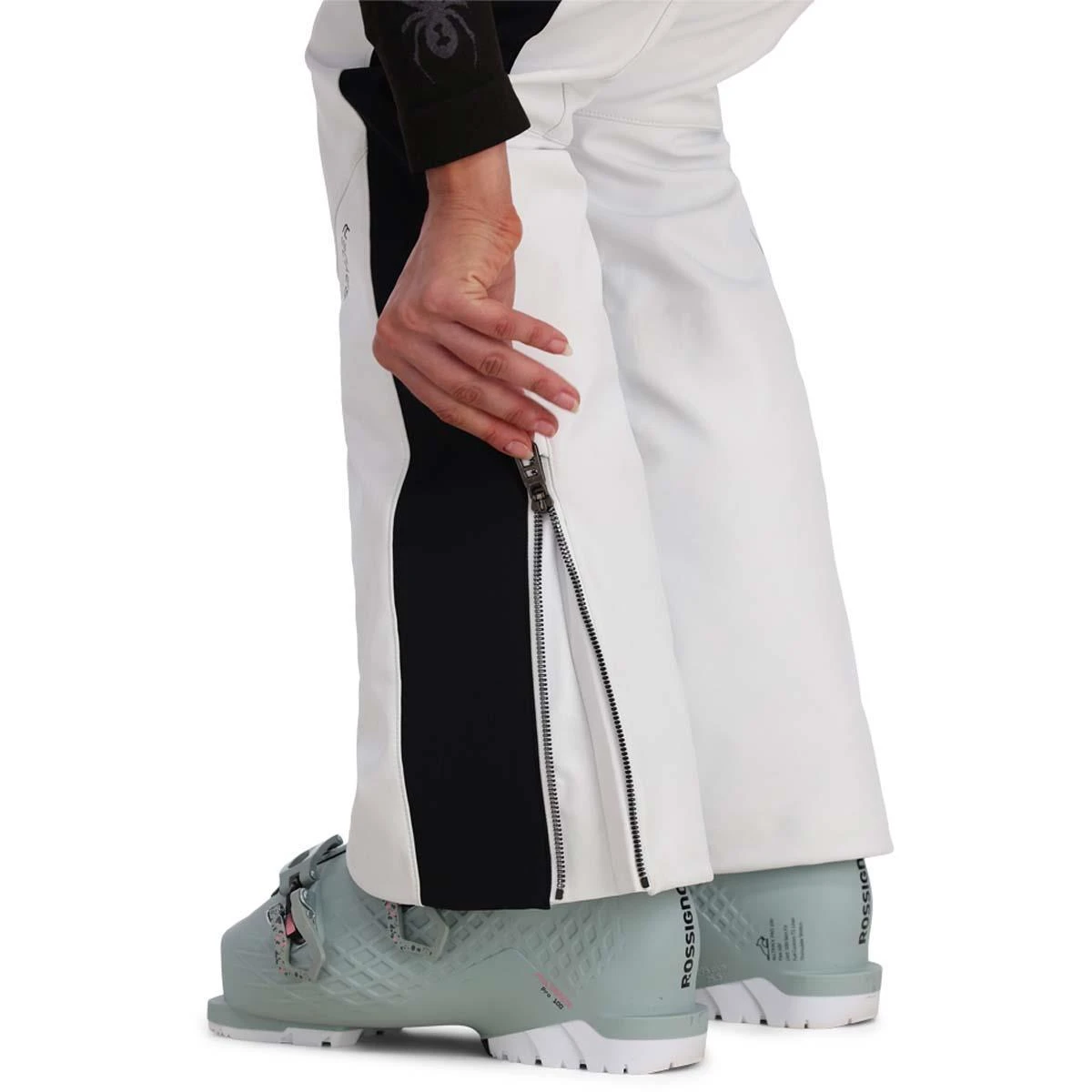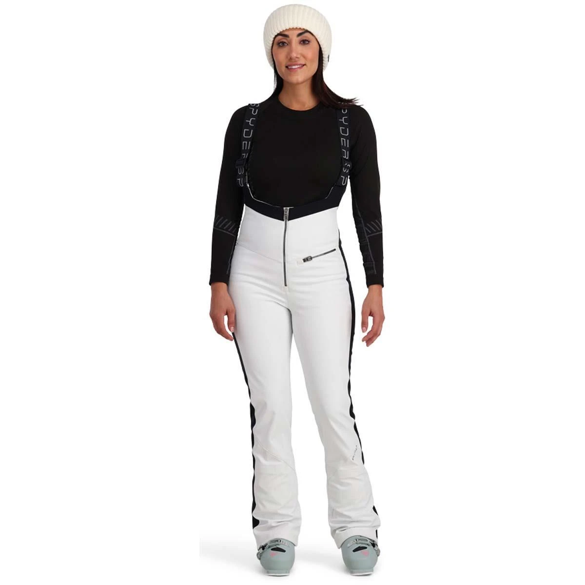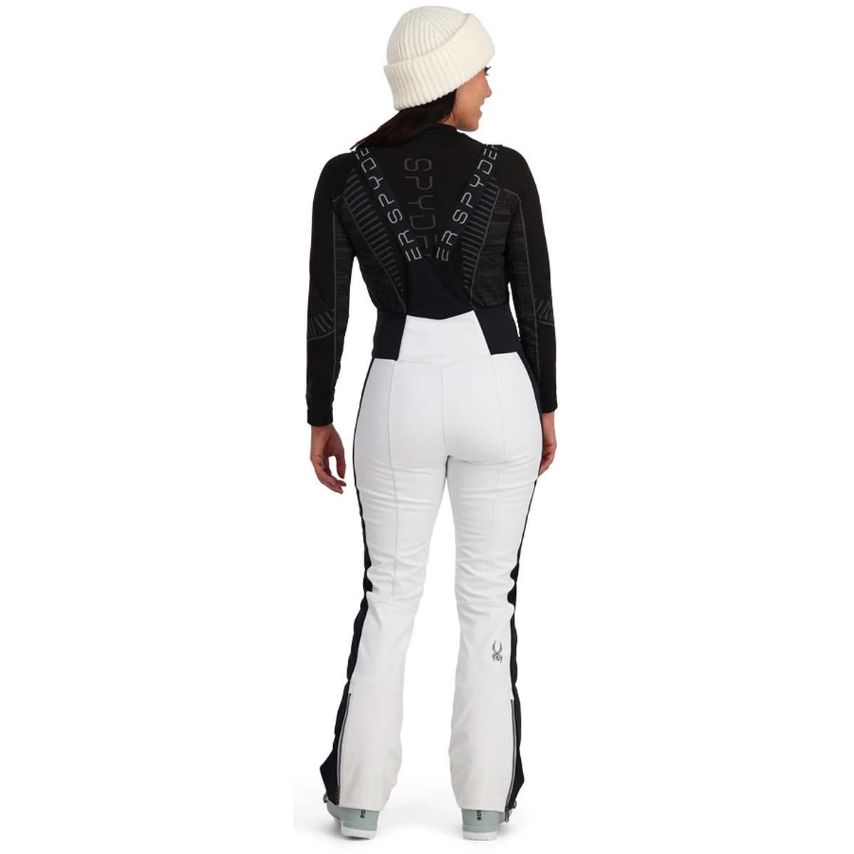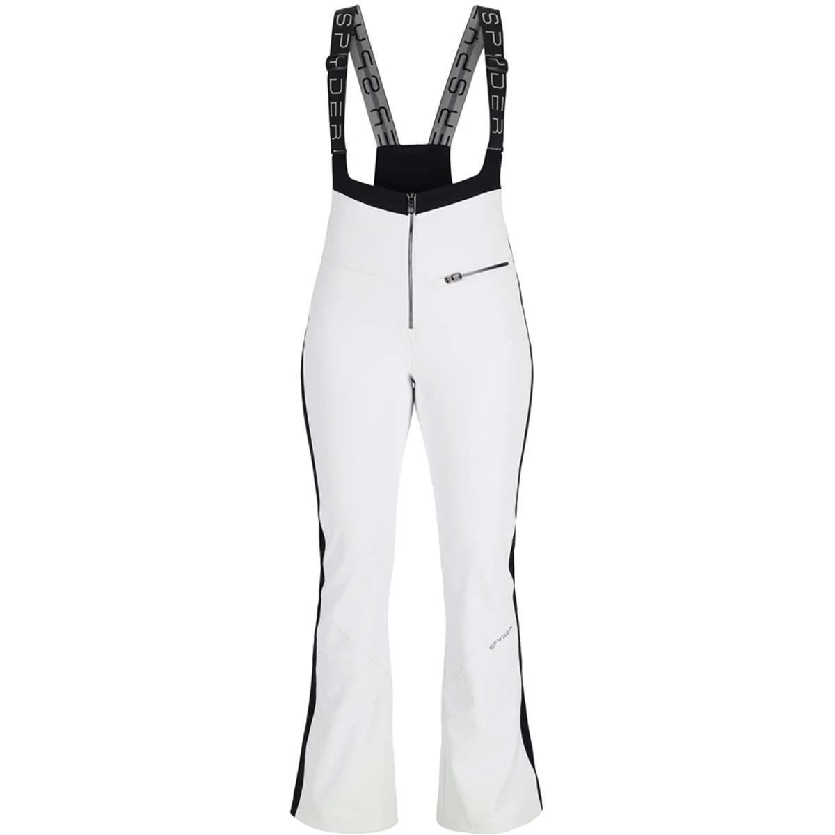 The Spyder Women’s Strutt bib pant is a softshell has 360° stretch EXO SHIELD that is engineered to fit snugly–embracing the curves of your body like your favorite yoga pants. Nylon fleece interior provides warmth, and the EXO SHIELD allows for freedom of movement. You will stay dry and looking fabulous in the Strutt Bib made with a 10k laminate, and finished off with YKK® Metaluxe® Antique Chrome zippers. The perfect blend of fashion, performance and style.