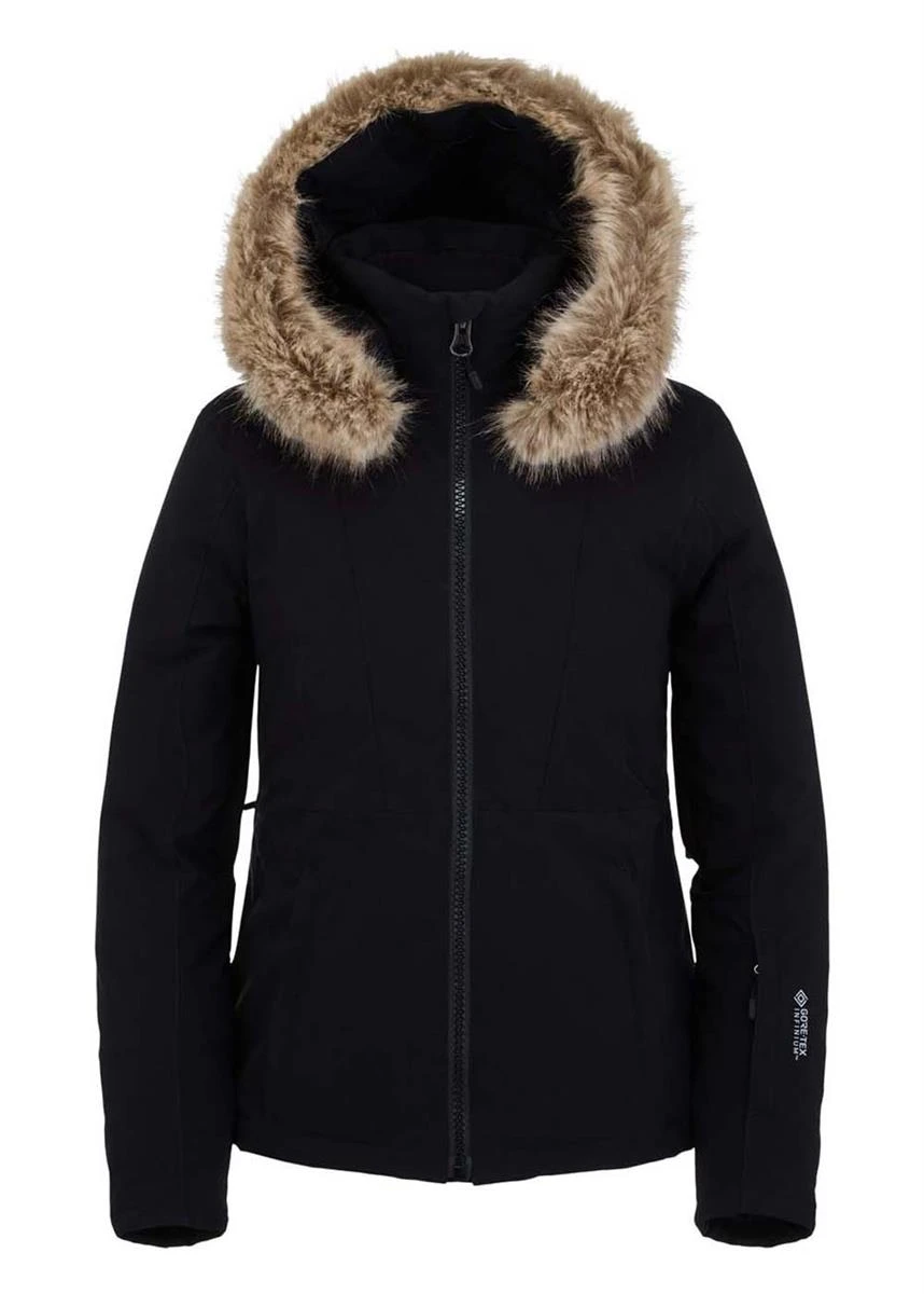 The Women’s Vida Gore-Tex Infinium Jacket from Spyder brings a fresh new look to the Spyder alpine line.ย Faux fox fur trim on the hood allows this piece to stand out off the mountain, meanwhile PrimaLoftยฎ Black Eco insulation and Gore-Texยฎ laminate keeps you insulated and protected from the elements.ย PFCec-Free DWR treatment and the inclusion of PrimaLoftโs Black eco insulation specifically add an environmentally-conscious component to the Vida.ย Donโt let its looks deceive you, though.ย With an underarm ventilation system, inner stretch cuffs with thumbholes, internal zippered pocket, mesh goggle pocket, and chamois lens wipe, the Vida delivers the accessories you demand to perform on the mountain, too.