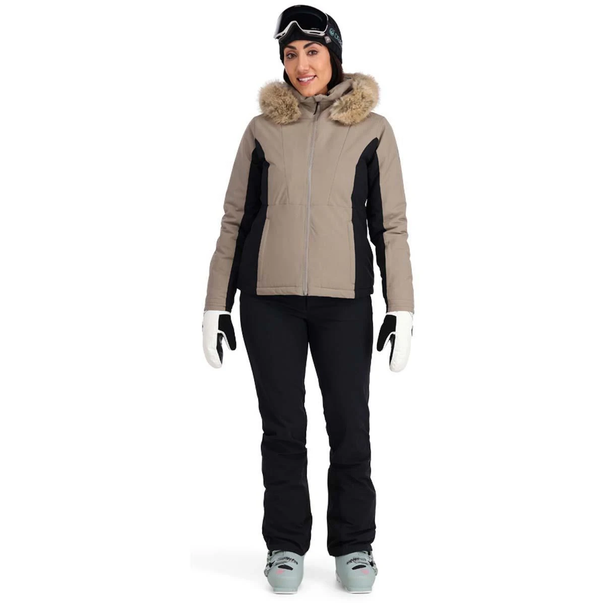 The Vida Jacket is a stylish ski jacket with classic design lines and a luxurious faux fur accent on the hood. It also has 360ยบ stretch EXO SHIELD technology. You will find the Vida fit to be generous and accommodating, yet incredibly flattering. When the temperatures drop, youโll appreciate the 80 grams of PrimaLoftยฎ Black ECO Insulation and a 20k laminate to keep you insulated and protected from the elements. The Vida also has those classic ski features, like a powder skirt, inner pockets, and underarm venting, giving you that technical comfort you need on the slopes.
