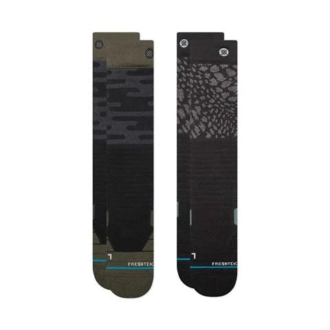 This double Black Diamond set includes two pairs of ski-ready socks. Designed with an OTC cut, medium compression and performance arch support, you can make the most of your pass without being bogged down by fatigue.