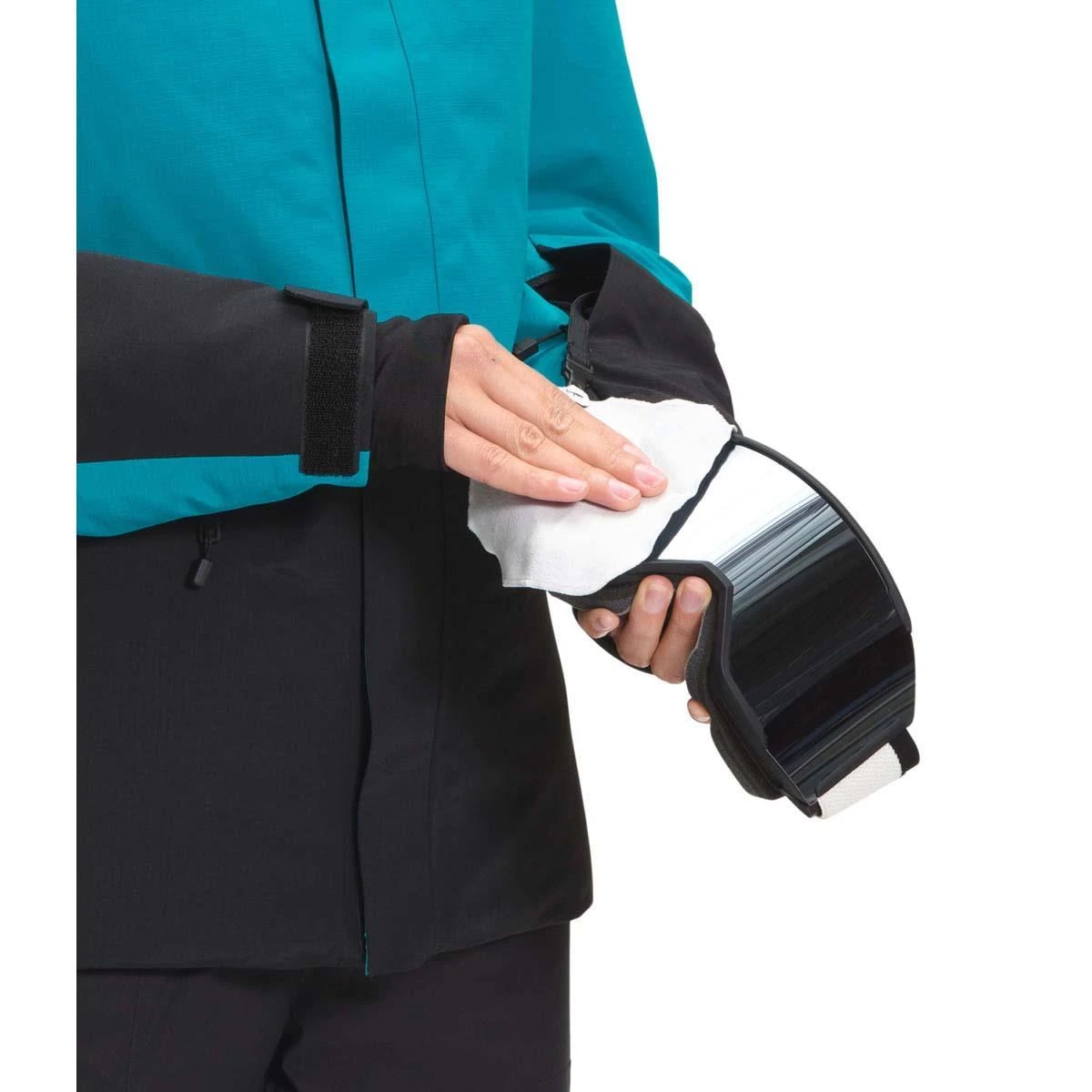 - Secure-zip wrist pocket with goggle wipe
