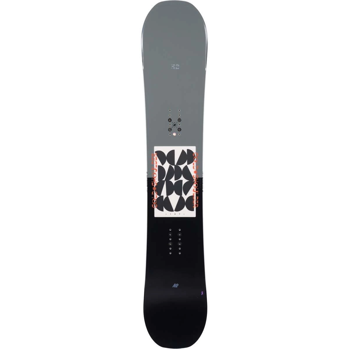 Designed for the intermediate to expert snowboarder, the K2 Cold Shoulder features a Combination Camber profile that puts camber in between the feet for snap and stability and a rocker profile outside the bindings for playful and intuitive turn initiation. A small amount of rise in the tail helps to keep the board playful and predictable, while a long-extended rocker profile in the tip helps to ease turn initiation and float in powder.