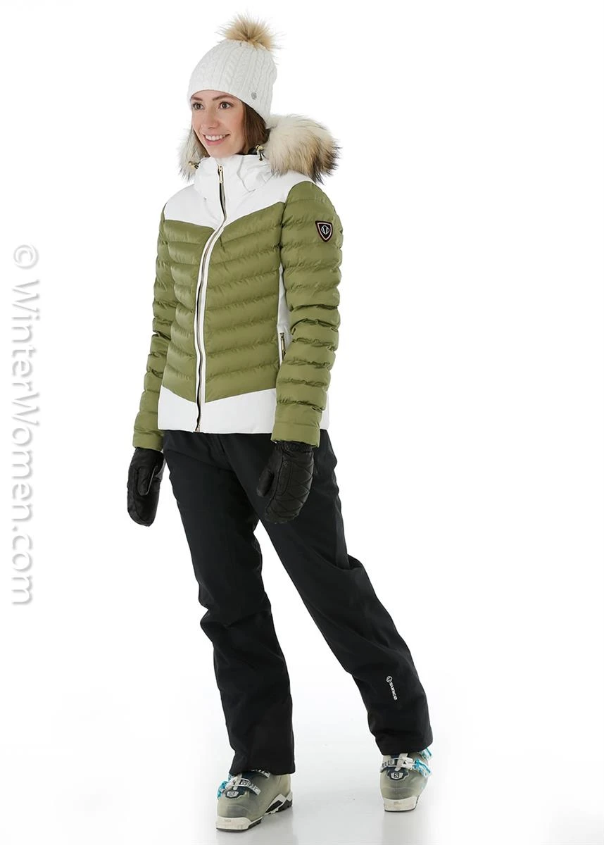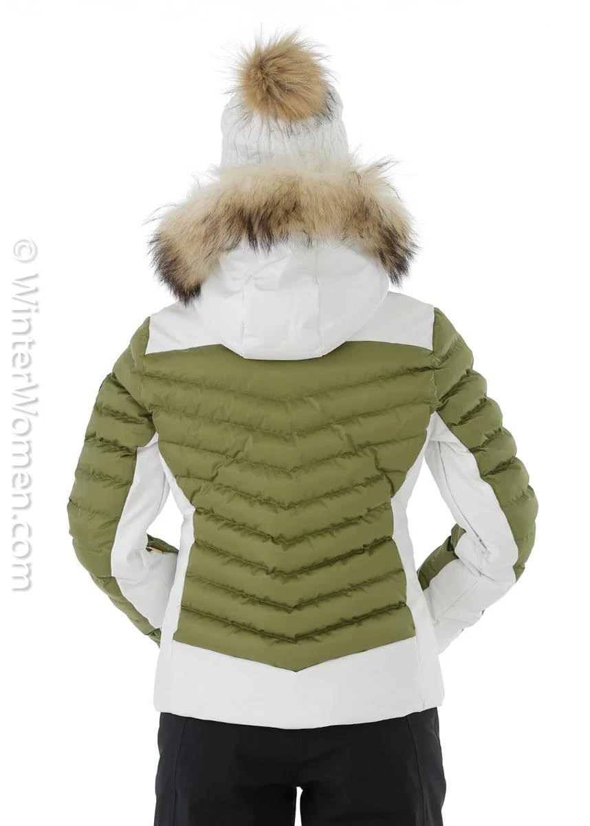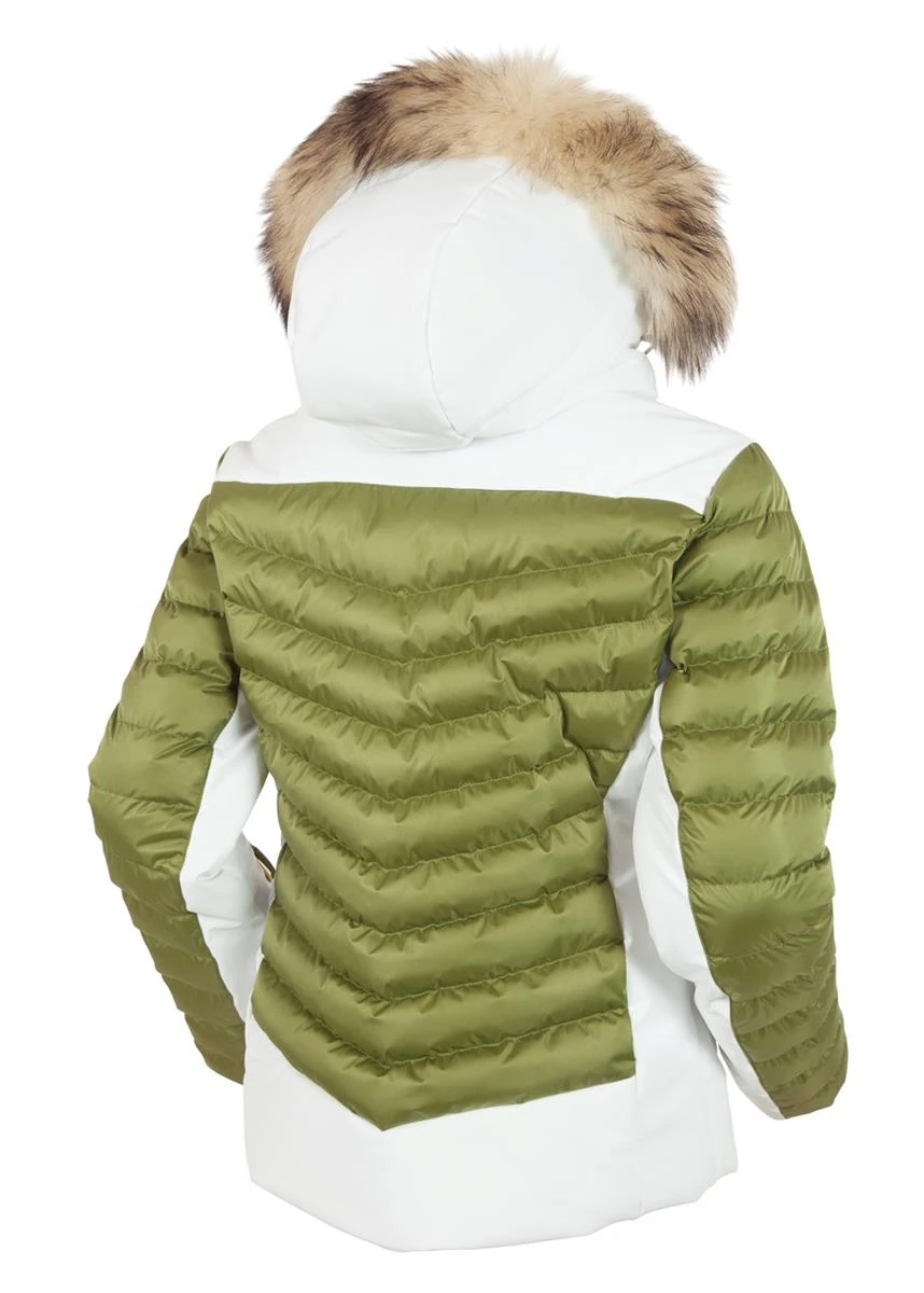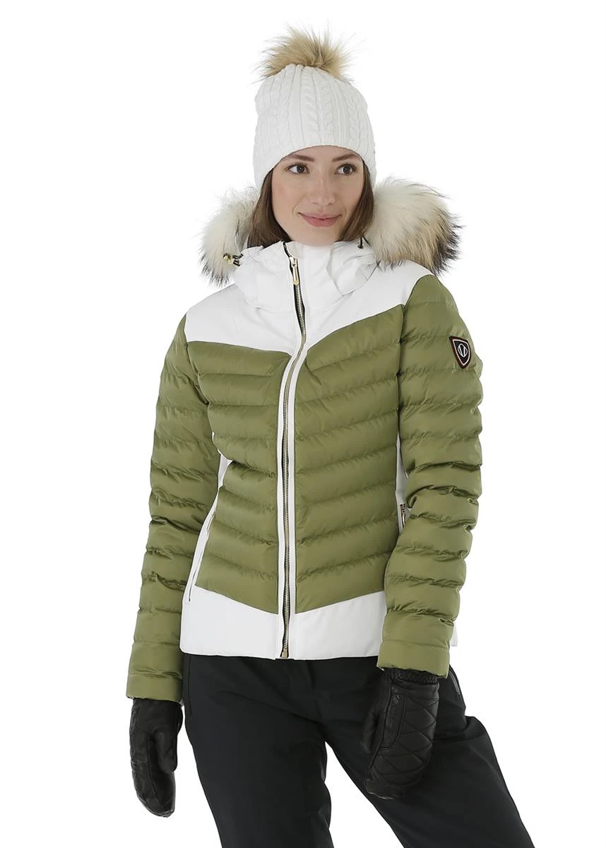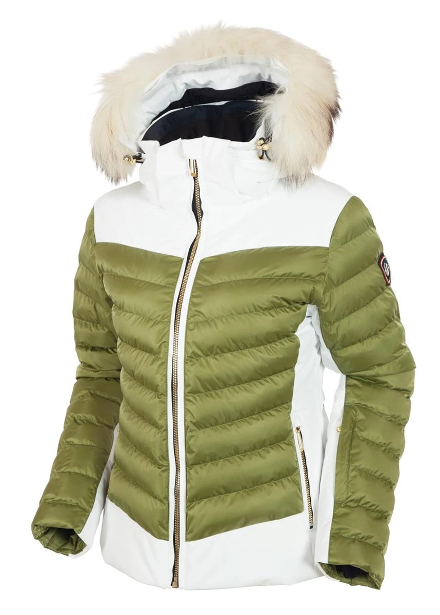 - It’s your time to sparkle in the snow while staying warm and dry without adding bulk. This custom quilted jacket is not only waterproof, breathable and insulated, it shines and stretches with every move, thanks to deluxe 4-way stretch nylon mixed with Luster II nylon satin. Both the natural fur ruff and adjustable hood are removable. Also equipped with a powder skirt, inner stretch cuffs with thumbholes, underarm zip ventilation, inside goggle cleaner and phone pocket. Lined in push Paltex fleece.